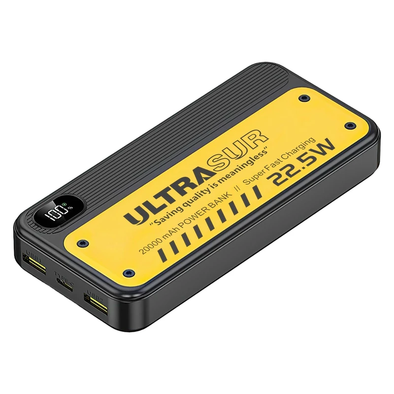 پاوربانک فست شارژ اولتراسور مدل +U-P4 با ظرفیت ۲۰۰۰۰ میلیآمپرساعت، یک همراه قدرتمند برای کسانی است که به شارژ سریع و مطمئن نیاز دارند. این پاوربانک مجهز به سه پورت خروجی شامل دو پورت USB با فناوری QC3.0 و یک پورت PD با توان ۲۲.۵ وات است که میتواند دستگاههای مختلف مانند گوشی، تبلت یا هدفون را با بالاترین سرعت شارژ کند. وجود نمایشگر دیجیتال روی بدنه دستگاه نیز به شما امکان میدهد میزان شارژ باقیمانده را بهصورت دقیق مشاهده کنید.